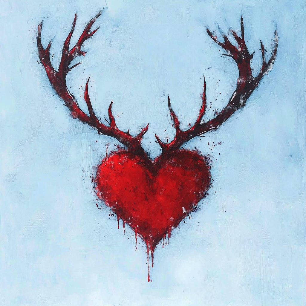 High on the wall, trophy heads stared down. They were all impressive specimens, save for the one in prime position above the fireplace. It looked like a cruel joke. Matthew had never been in the home of an actual big game hunter, but knew from movies and TV that these prizes were points of pride. This thing was the opposite. Its head was too small, with one side marred by broken antlers, and the other side sunken and malformed from the bullet to its face. It was so ugly, Matthew had to look away.